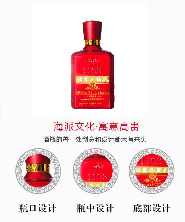 北京二鍋頭酒業(yè)股份有限公司,傳承老北京二鍋頭傳統(tǒng)釀造技藝,產(chǎn)品選用優(yōu)質(zhì)高粱為原料,以麩曲為糖化發(fā)酵劑,采用老五甑發(fā)酵法、混蒸混燒、看花接酒、掐頭去尾,長期儲存、精工勾兌而成。酒液清澈透明,酒體醇厚,綿甜爽凈,余味悠長等特點,飲譽,公司以嶄新的姿容展現(xiàn)在京南大地,實現(xiàn)了“釀成春夏秋冬酒,迎來東西南北客,銷通五湖四海路,博得天涯海角名”的幾代人為之奮斗的夙愿。