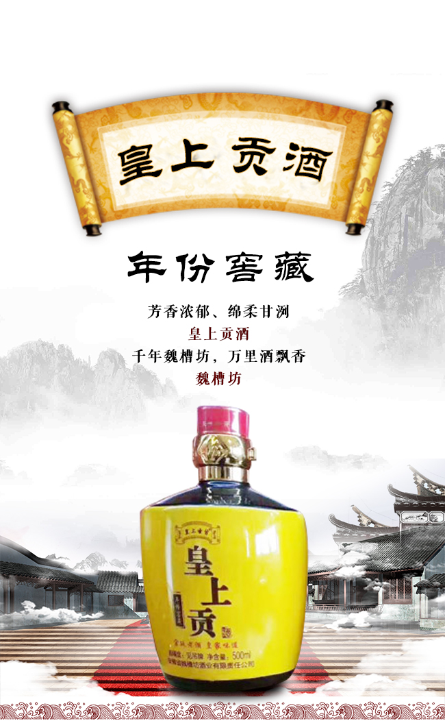 安徽魏槽坊酒業(yè)有限責任公司座落在華夏酒城安徽白酒之鄉(xiāng)——亳州市古井鎮(zhèn)。地處大京九鐵路沿線,自古以來,人杰地靈、物華天寶、資源豐富。公司釀造的白酒是通過“擇層取醅”、“擇時摘酒”等傳統(tǒng)技術(shù),得到精華的原漿美酒,再放入地下酒庫經(jīng)陶壇洞藏一定年限,使其自然老熟。