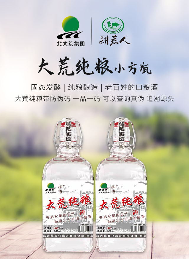 黑龍江耕荒人酒業(yè)攜手北大荒文旅公司推出大荒純糧帶防偽碼,一品一碼,可以查詢真?zhèn)、追溯源頭,原產(chǎn)地、固態(tài)發(fā)酵、純糧釀造老百姓的口糧酒!