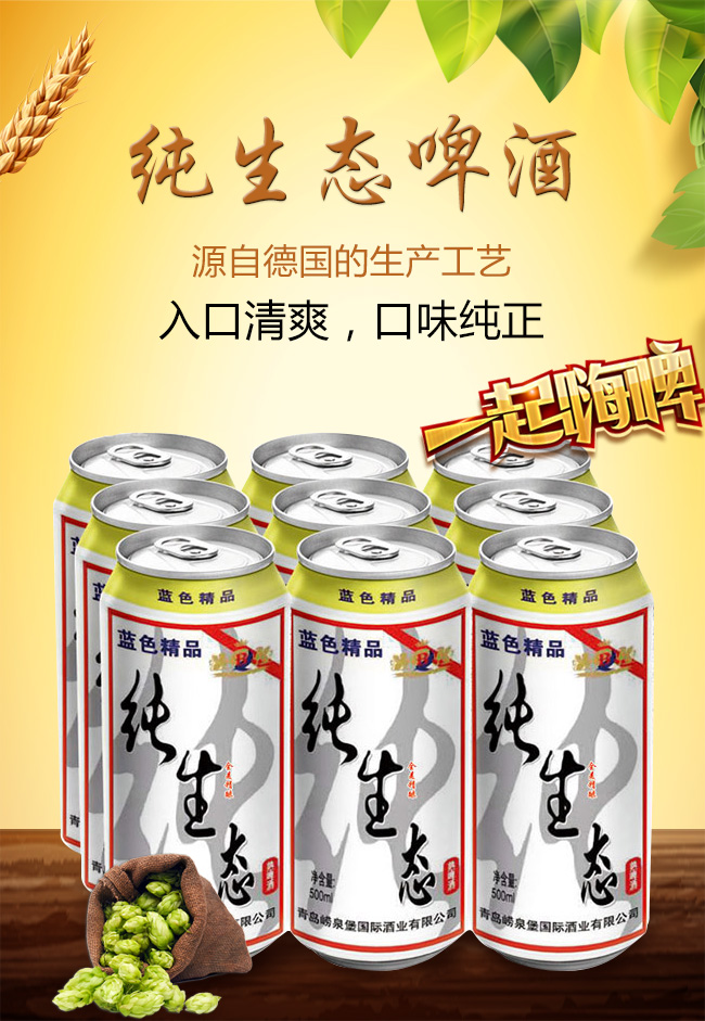 產(chǎn)品名:藍(lán)色精品純生態(tài)啤酒【8°500ml】
