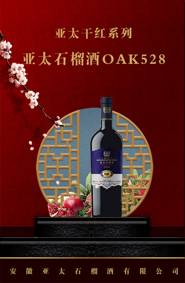 品鑒:本酒采用獨(dú)特發(fā)酵工藝精釀而成,石榴酒酒體純正,色澤光亮透明,酸甜爽口,保留了石榴酸、甜、澀、鮮之 天然風(fēng)味,其風(fēng)格獨(dú)特。