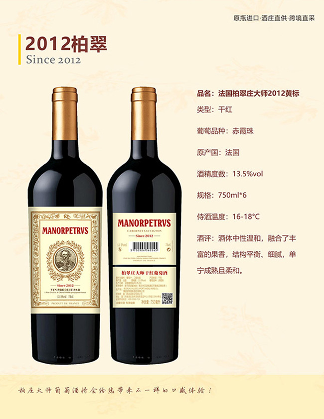 品名:法國(guó)柏翠莊大師干紅葡萄酒2012(黃標(biāo))【13.5° 750ml】