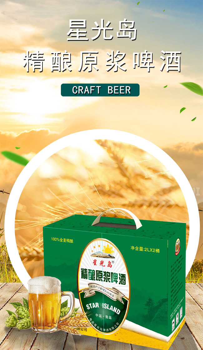 產(chǎn)品名稱:星光島精釀原漿啤酒【12.2°2L×2桶】