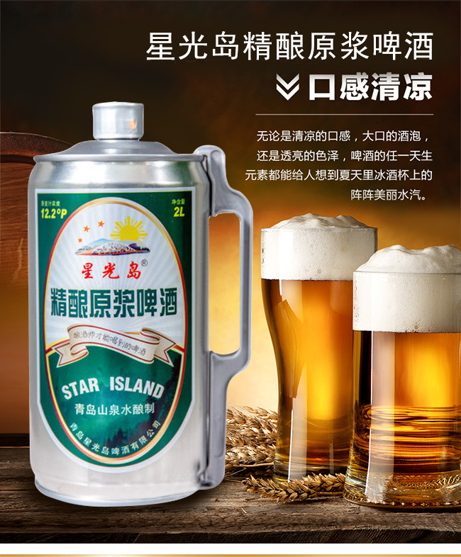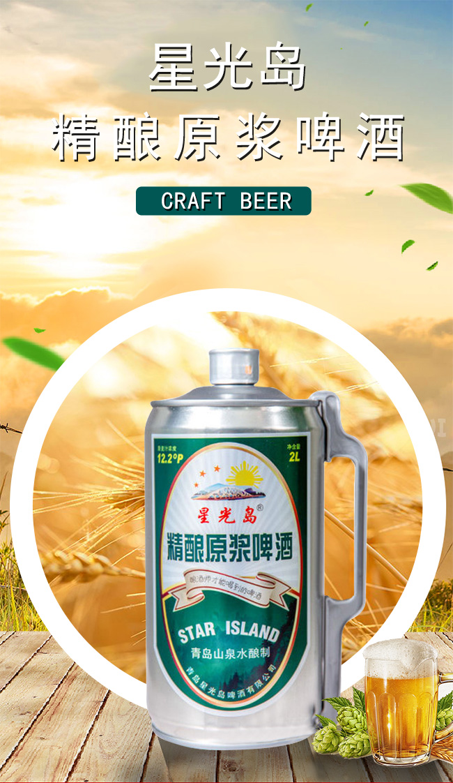 產(chǎn)品名稱(chēng):星光島精釀原漿啤酒【12.2°2L】