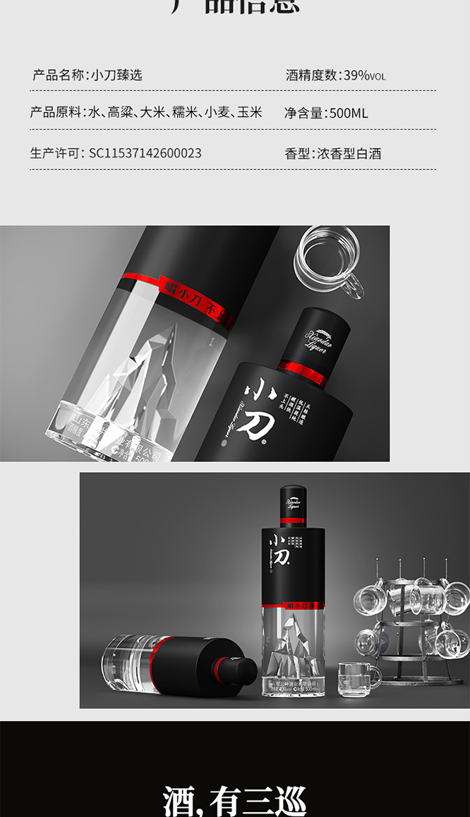 產(chǎn)品名:小刀酒臻選39°500ml濃香型白酒
