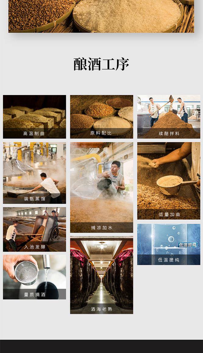 原料:水、高粱、大米、糯米、小麥、玉米等