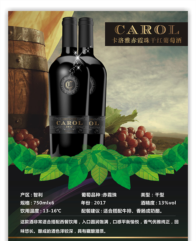 產(chǎn)品名:卡洛雅赤霞珠干紅葡萄酒13°750ml