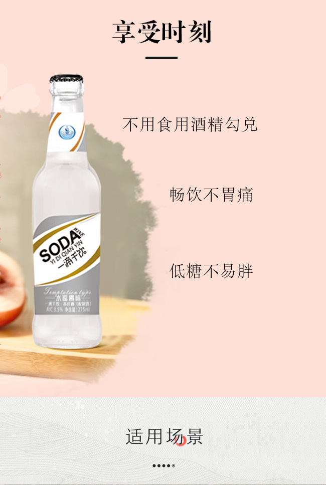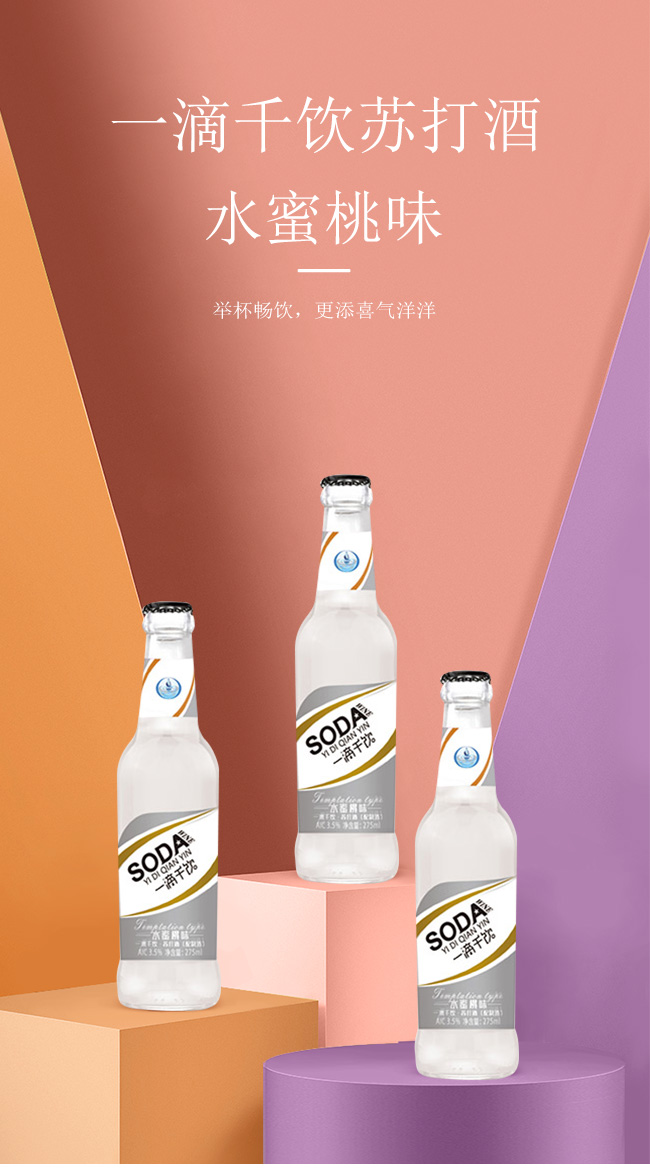 產(chǎn)品名稱:一滴千飲蘇打酒水蜜桃味【3.5°275ml】