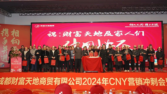 2023年12月20日,成都財(cái)富天地商貿(mào)有限公司2024年CNY營(yíng)銷(xiāo)沖刺會(huì)暨新春年會(huì)在成都友豪錦江酒店順利召開(kāi)。